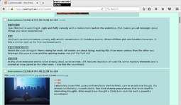 >>702>>706Streamer here, I'm totally down to stream Niea_7 after Texhnolyze as well. It was a tossup between the two as to which one to do first, and of course the more people the merrier.