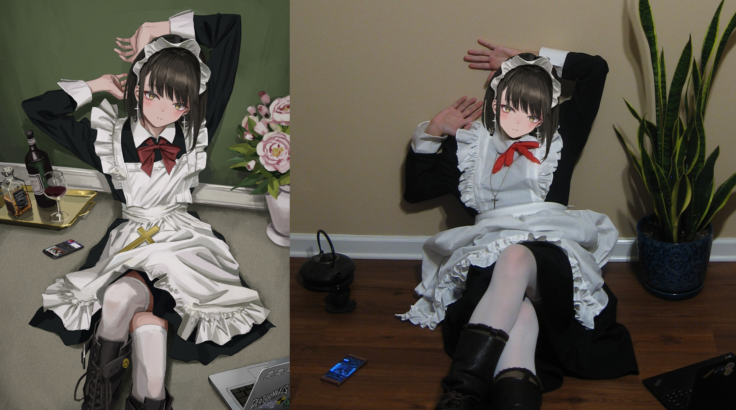 >>3084The depth of field in this image doesn’t feel right. Its as if she’s sat on a ledge or perched on something, but she’s actually sat on the ground but still not aligned with it. Compare her skirt to the tray, phone, and the plant pot. This clearly means she is a hallucination, probably caused by sleep deprivation, and should be ignored.