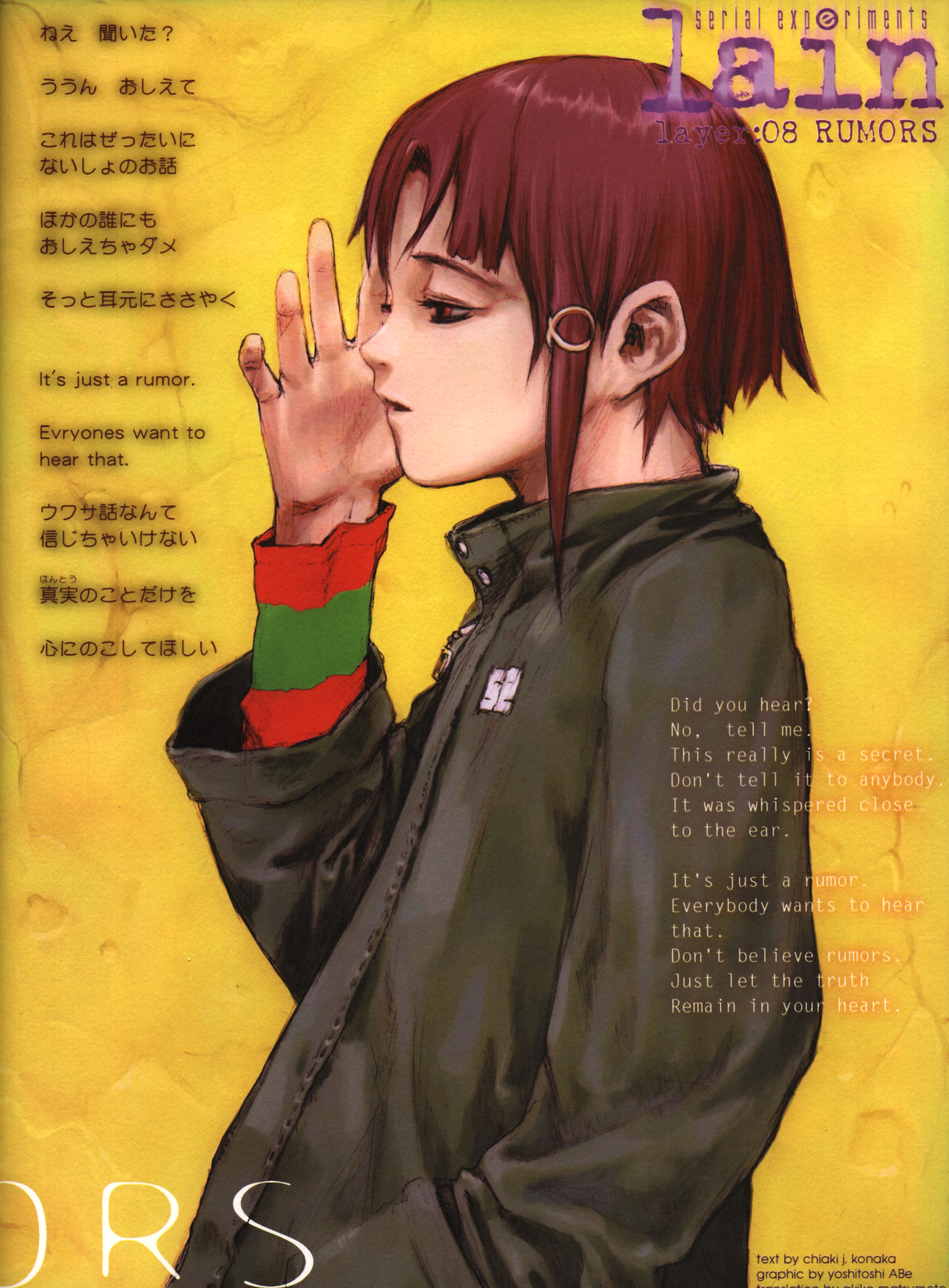 >>1104I really liked it. A lot of people see the show differently, but I personally saw it as a show about the connection between people and how your "self" can be bastardized by the internet. This really hit home with me – growing up on the internet, there were experiences I had that both empowered me and scared me, and this is deconstructed in Lain.