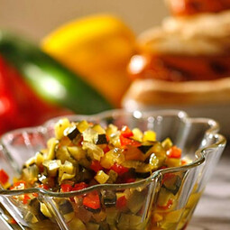Onions, pepperoncini, mustard, tabasco, and ketchup. Very sweet and tangy, with a hint of spicy.