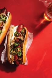 I wanna go to a gourmet hotdog place or something now. I like red hotdogs but I don't think there's much to them other than food dye