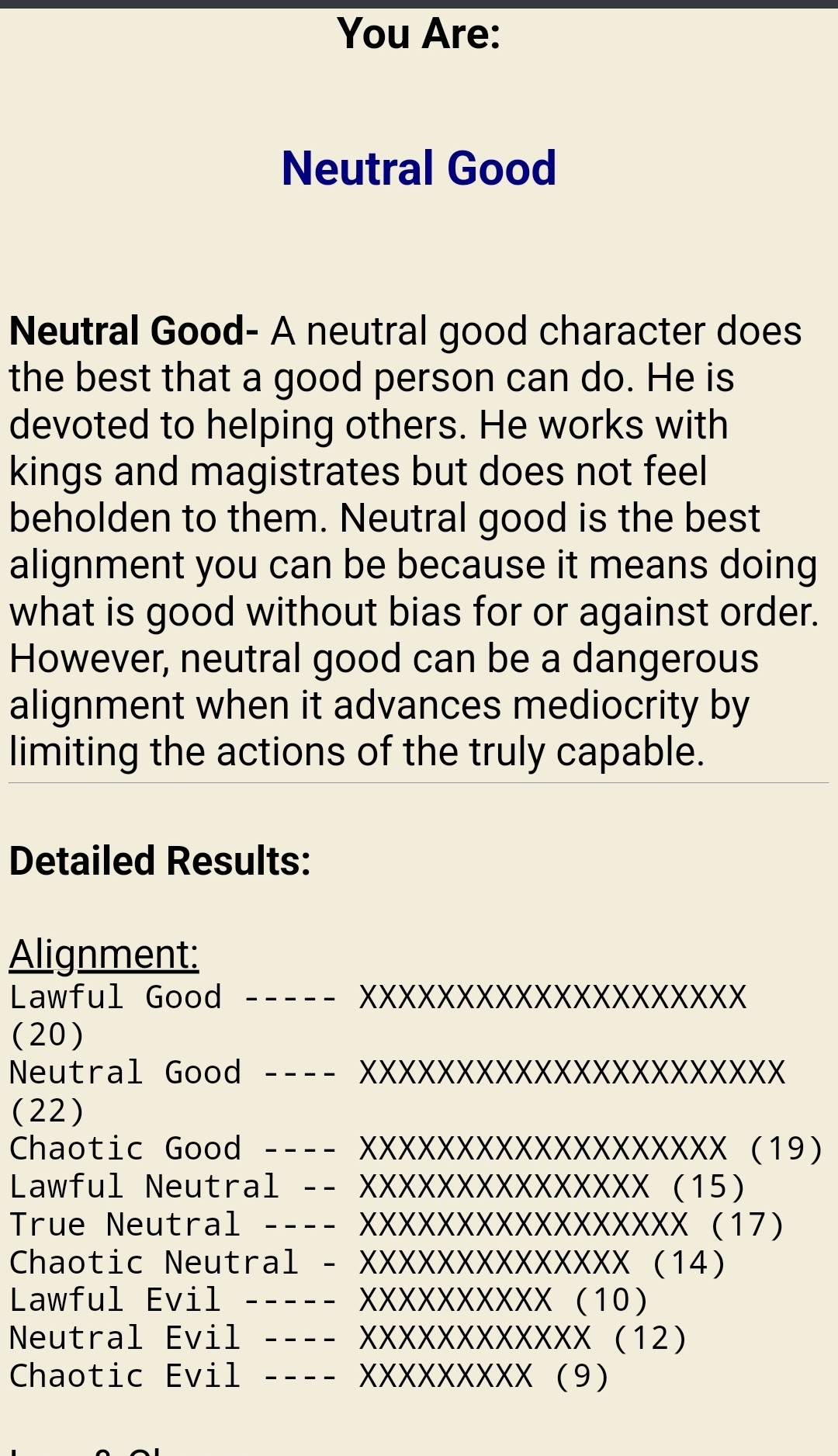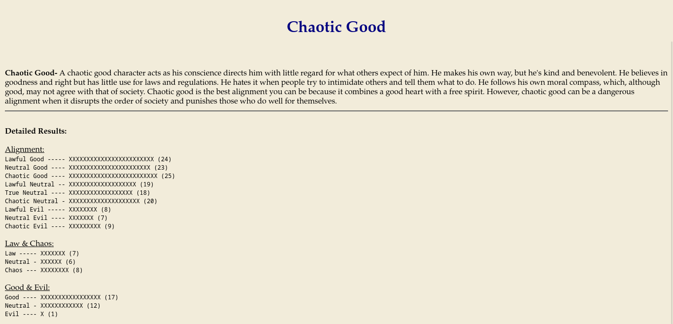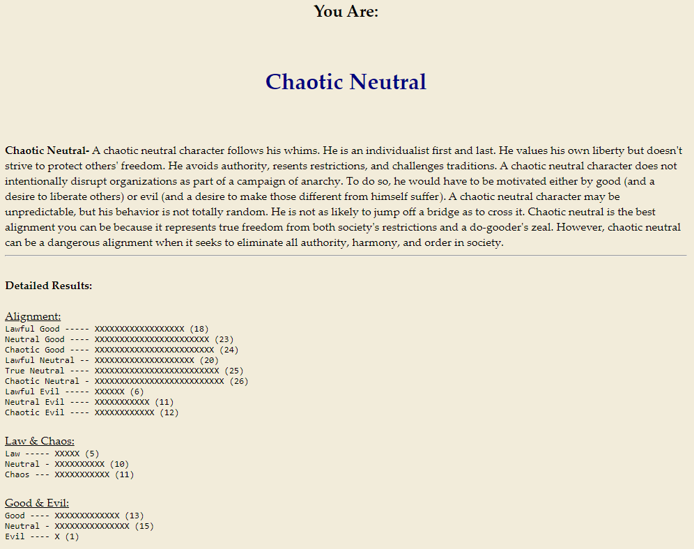 I just think it's fun to know who we are in terms of moral alignment through DnD's Alignment System. I'll show you mine first!!!