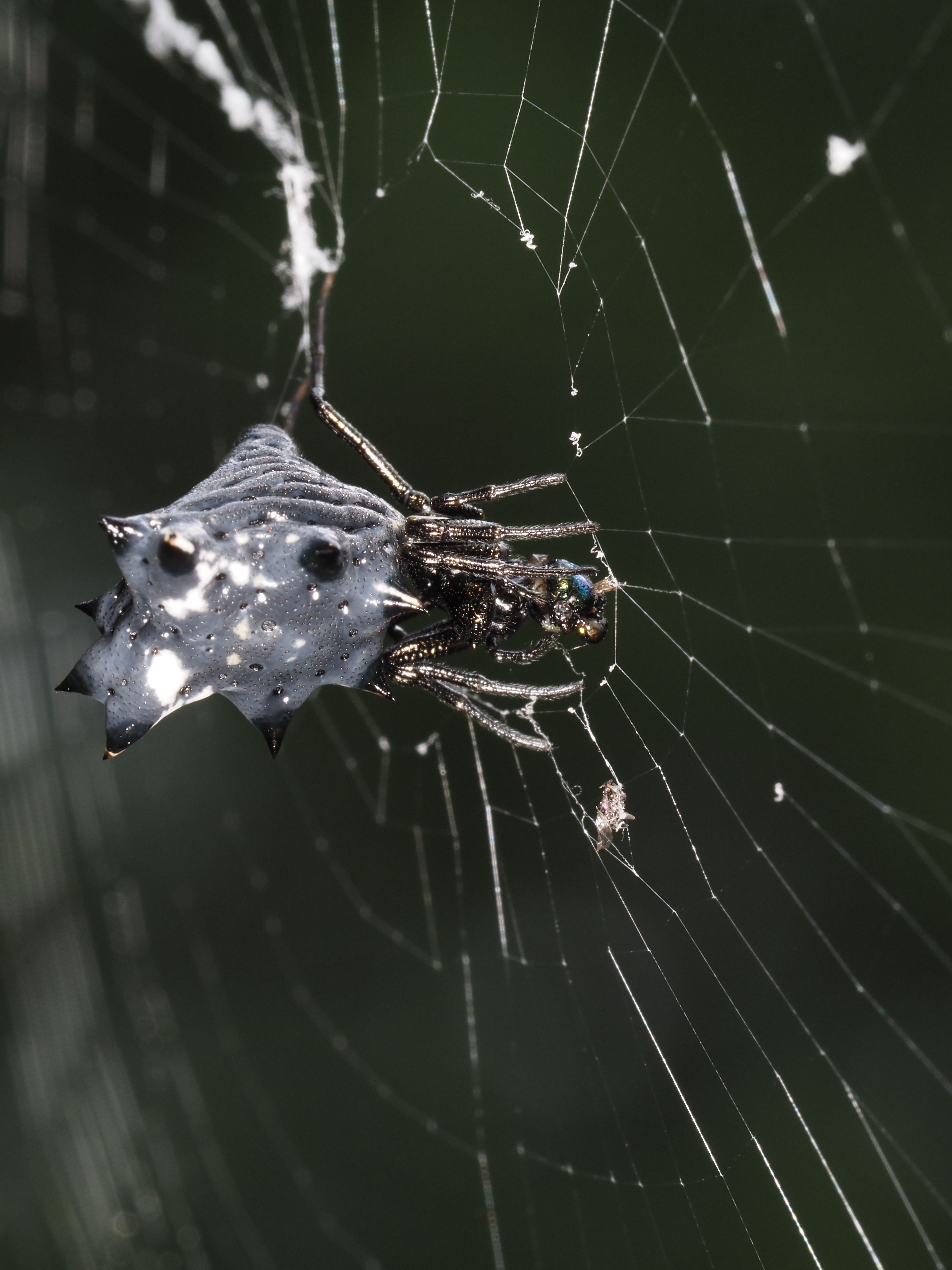 Seems like they can come in all kinds of colors but black and white is common. I got a cool shot of it eating a fly and also found a massive nursery spider
