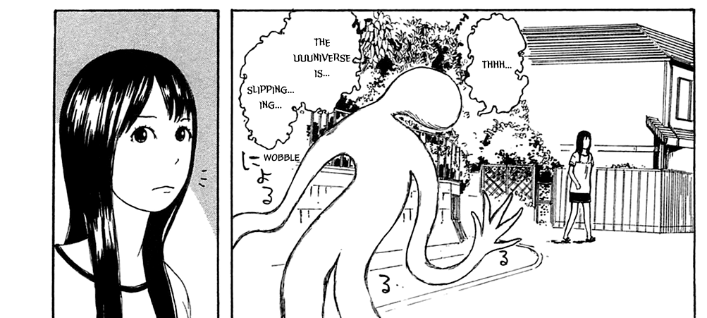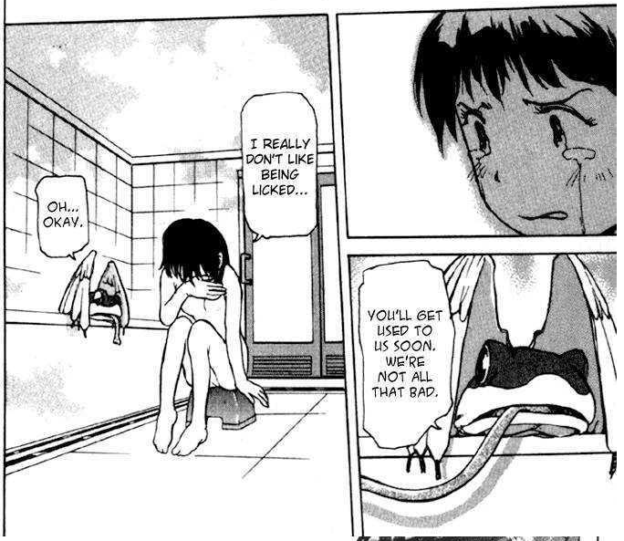 Been reading Asper Girl, Shiori Experience, and Area 51, rather unfortunately Area 51's translation is incomplete and doesn't seem to have any active TL effort going on, seeing as the last translated chapter seems to have been done over a year ago. Pretty unfortunate, it's got some of my favorite art in any manga I've ever read with its use of stark black and white tones and how its pages often use only the silhouette or shadows of a character to show them. The mangaka's a master of this style.