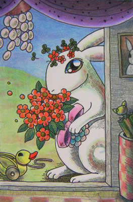 https://mega.nz/file/u1QBwJIR#_NL4ZDTp52MRi1MqqbDpCyrNWKH2RcrX-W6ADN7hez4One of the rereleased albums mentioned in the Nekomatsurihime post was a collaboration with YohChuSha, and there is a YohChuSha-produced concept album that she sings on which is a collaboration with multiple artists including mangaka Fujiwara Kamui, who around 2000 created some kind of interactive online community-drive manga (I don't really know anything about this) which is what the concept is. Each person is a different character and the lyrics are all from a manga that comes with the album. I think this album was planned on the website for this manga as a community project but I can't find much about it. It's far more whimsical and cartoonish but you can still tell who it is that made the album.