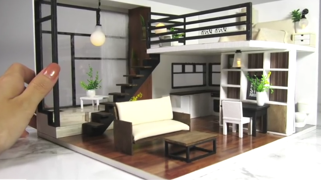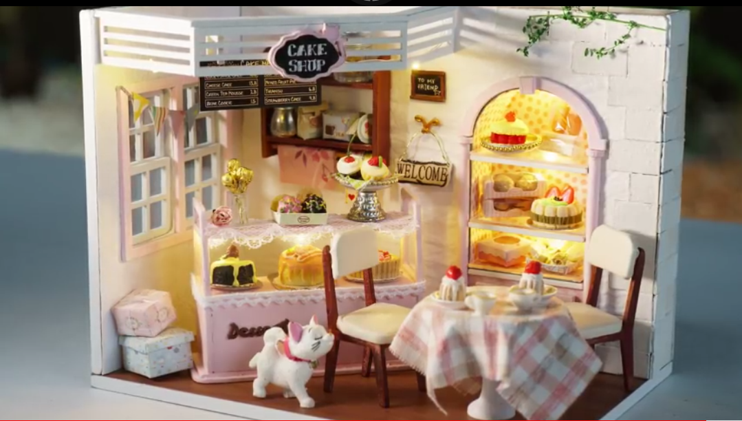 They mostly work with building little kits that you purchase online and you get everything from the wood to the wall papers and the little pieces to assemble things like tables and chairs.